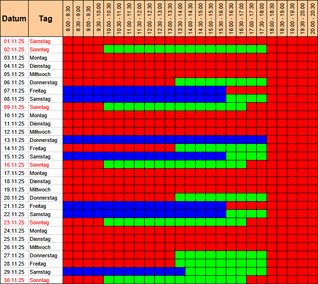 | Freitag | ganzer Tag | 8:00 bis 16:45 | ab 940,- € |