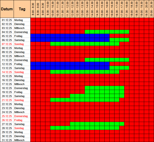 | Sonntag | ganzer Tag | 8:00 bis 16:45 | ab 1.520,- € |